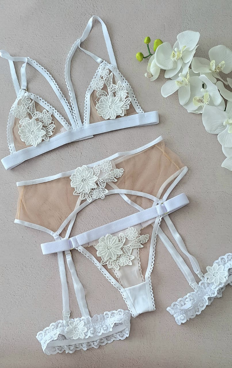 Incluye liguero a juego totalmente ajustable y panty tipo hilo. Horma justa son copa A.