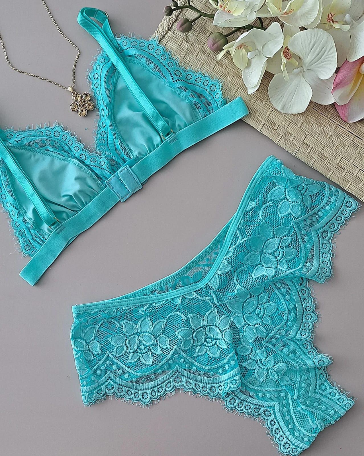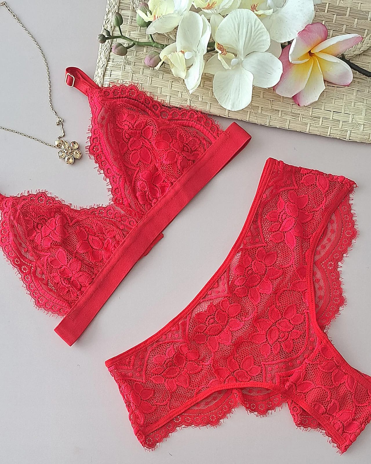 Elaborados en encaje elástico con Top tipo Bralett forrado en copa para mayor discreción. Panty de corte Cachetero con buen cubrimiento en la cola. Horma amplia en especial el panty. No traen aro.